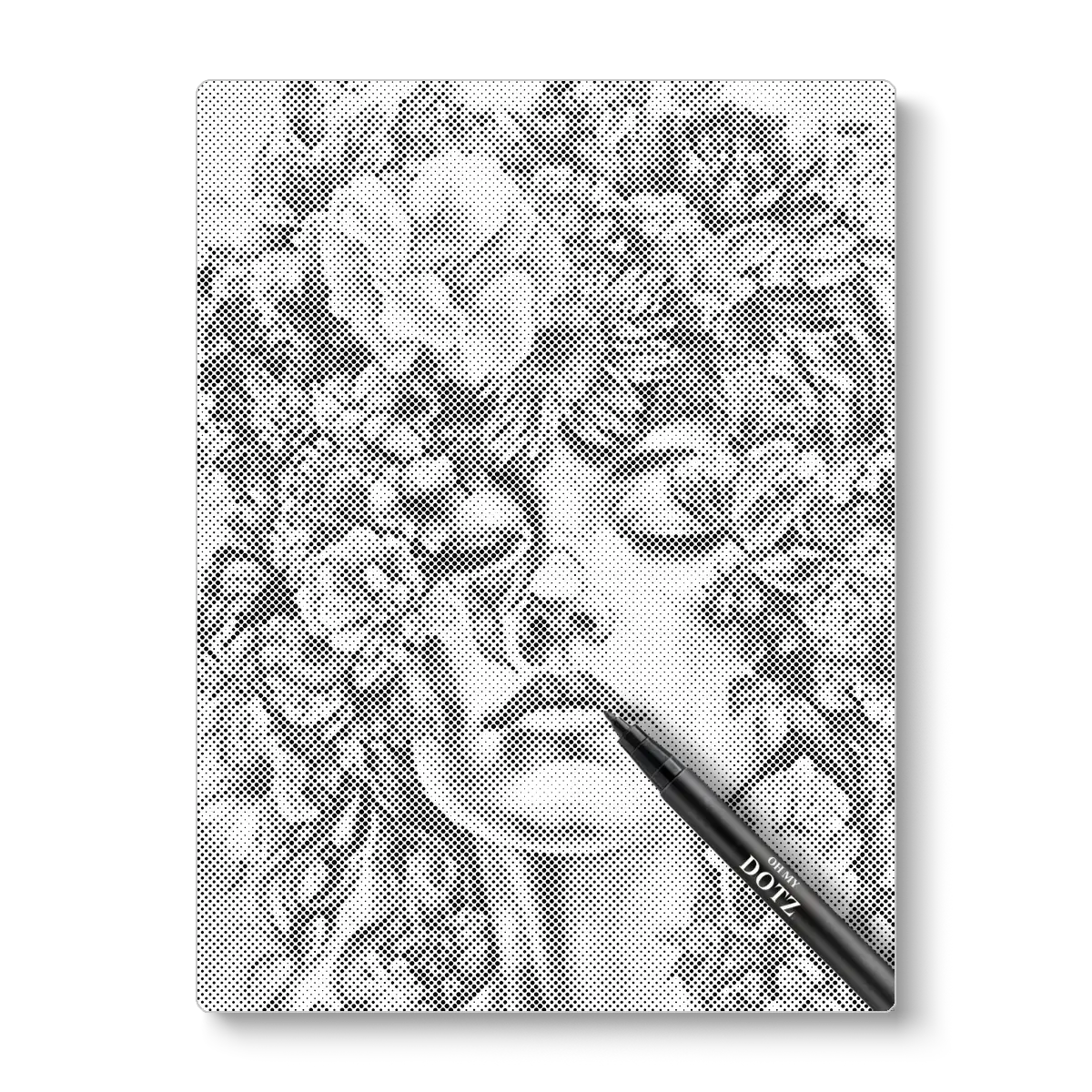Instead of using stones, you use special markers to bring your photo to life with dots.