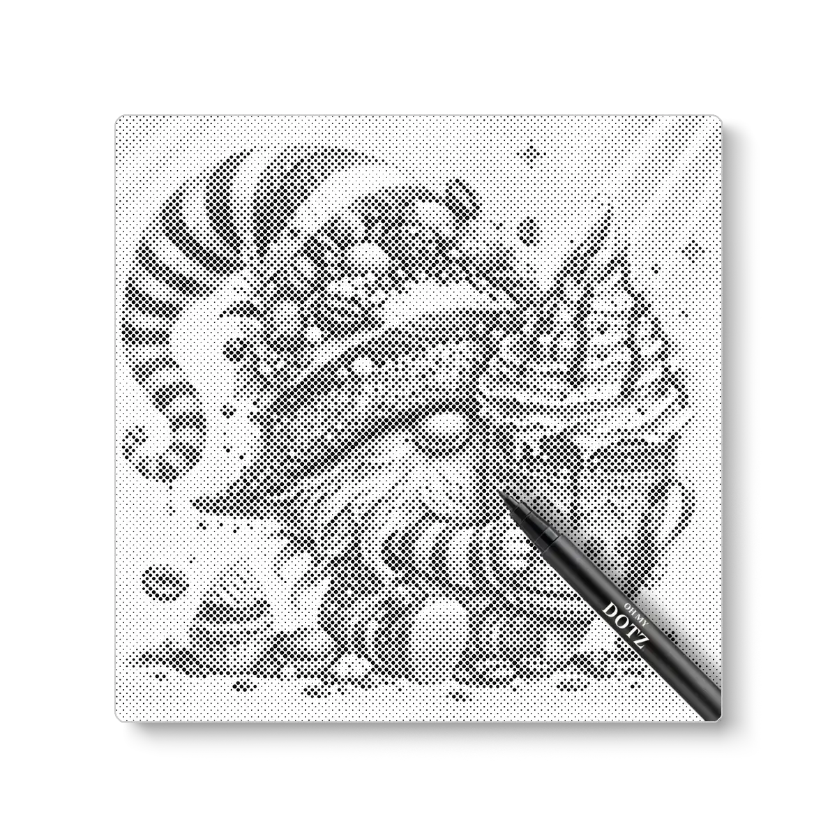 Instead of using stones, you use special markers to bring your photo to life with dots.