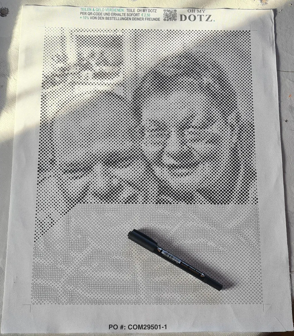 ✔ Une toile avec le motif du design choisi en peinture par points.
