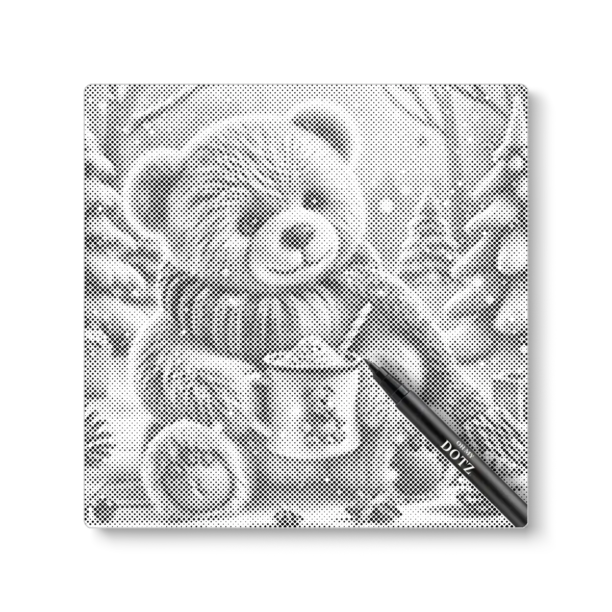 A vászon különböző méretű körökkel van nyomtatva. Ahogy kitöltöd őket, lassan megjelenik a kép, a saját dot painting alkotásod.